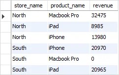 Next, join the result of the query above with a query that returns the total of sales by store and product. The following query illustrates the idea: