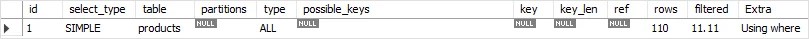 Because there is no index for the productName column, the query optimizer has to scan all rows to return the result as shown in the output of the EXPLAIN statement below:
