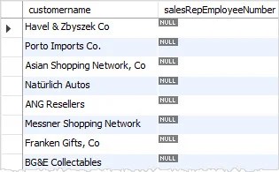table, some customers do not have any sale representative. The value of the column saleRepEmployeeNumber